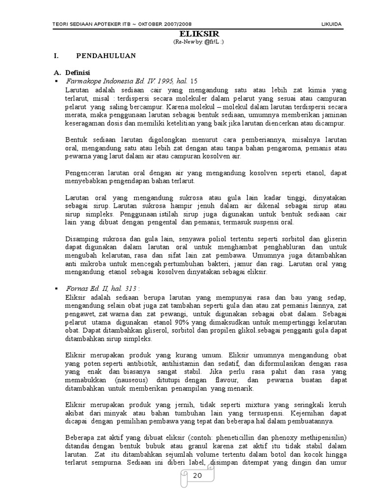 Doc Teori Sediaan Eliksir Putri Kholisotun Nawa Academia Edu