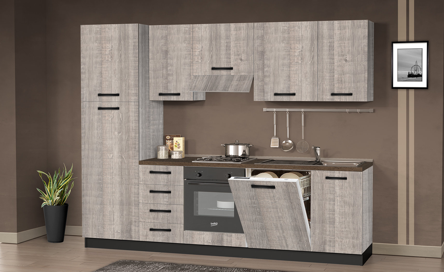 Gio Blok Kuhinja S Aparatima Boja Tortora Lijeva 330cm
