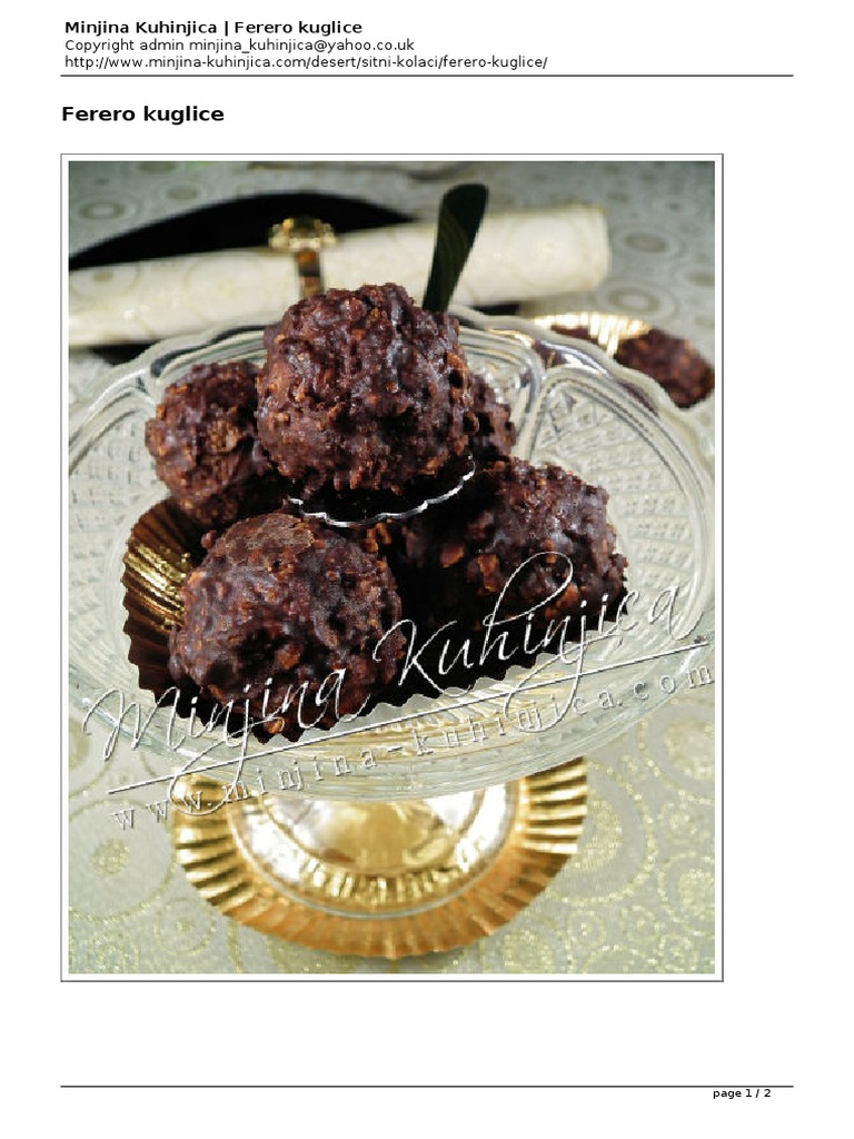 Složiti kuglice na tacnu i ostaviti u frižideru oko 45 minuta da se dobro stegnu i rashlade. Ferrero rocher kuglice zjakoplic recept 13 12 2017. Recept za domaću verziju poznatih ferrero rocher kuglica koje svi obožavamo. Kuglice su se svidjele i onima koji inače baš nisu fan ovih kuglica u originalu a neki su rekli da su ove bolje i od originala pa vam svakako svima preporučujem da isprobate ovaj recept.