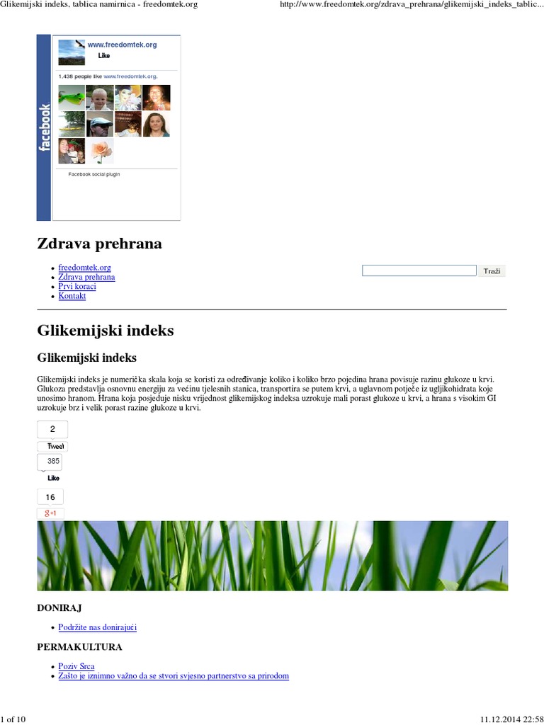 Glikemijski Indeks Tablica Namirnica Freedomtek Org