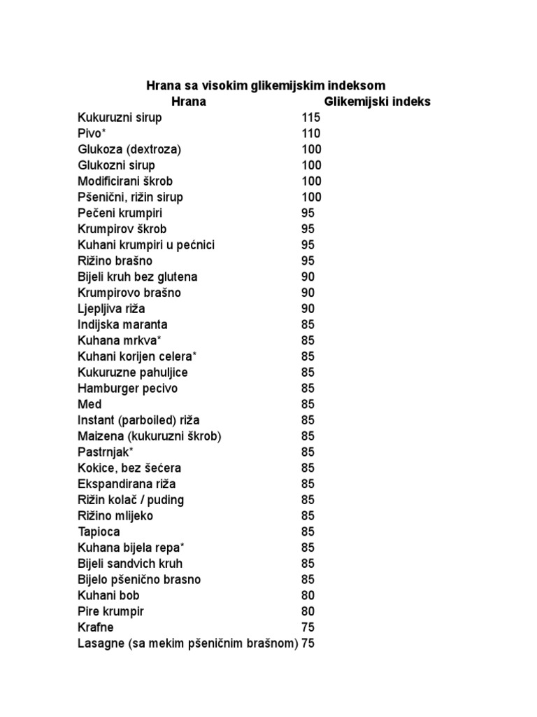Glikemiski Indeks Namirnice Tabela 1