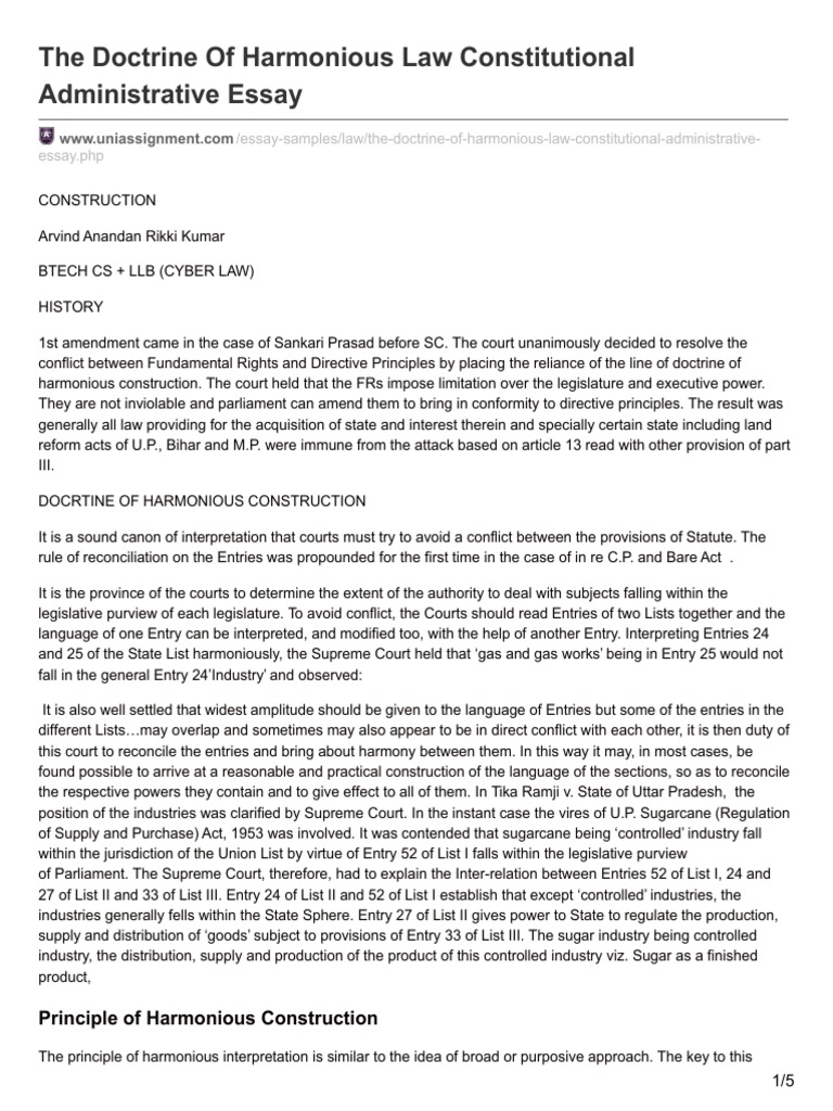 The Doctrine Of Harmonious Law Constitutional Administrative Essay Statutory Interpretation Constitution