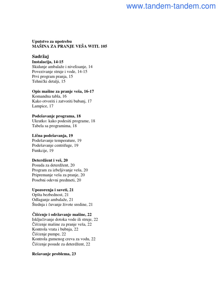 Indesit Ves Masina Uputstvo Za Koristenje
