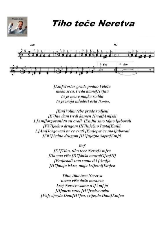 Note Domace I Strane Tiho Tece Neretva Note Akordi Tekst