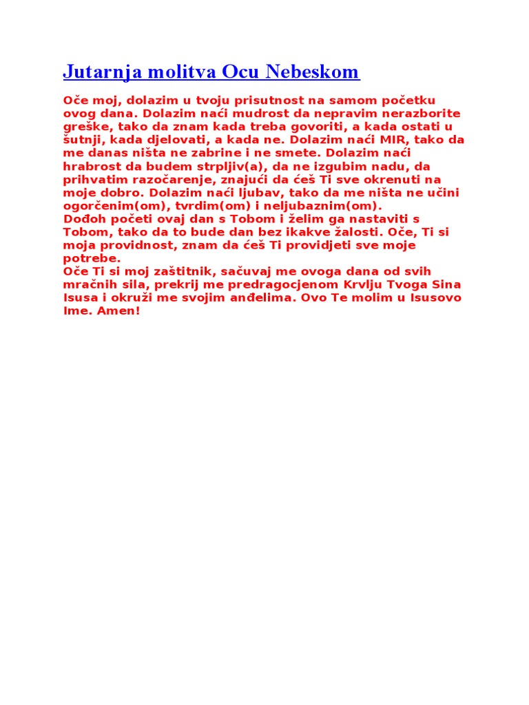 Jutarnja Molitva Ocu Nebeskom Doc